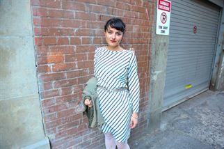 Her artistic work clearly manifests itself in her personal fashion choices, or maybe it’s the other way around? Either way, she naturally and beautifully completes her look with a classic red lip, which I’m always in favour of!