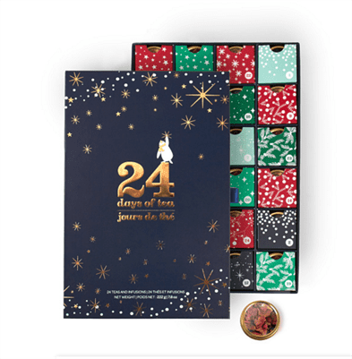 I picked up this lovely advent calendar at Davids Tea on Stephen Avenue for a girlfriend of mine that is obsessed with tea. It’s a great way to sample 24 different blends, and each tin makes two cups.