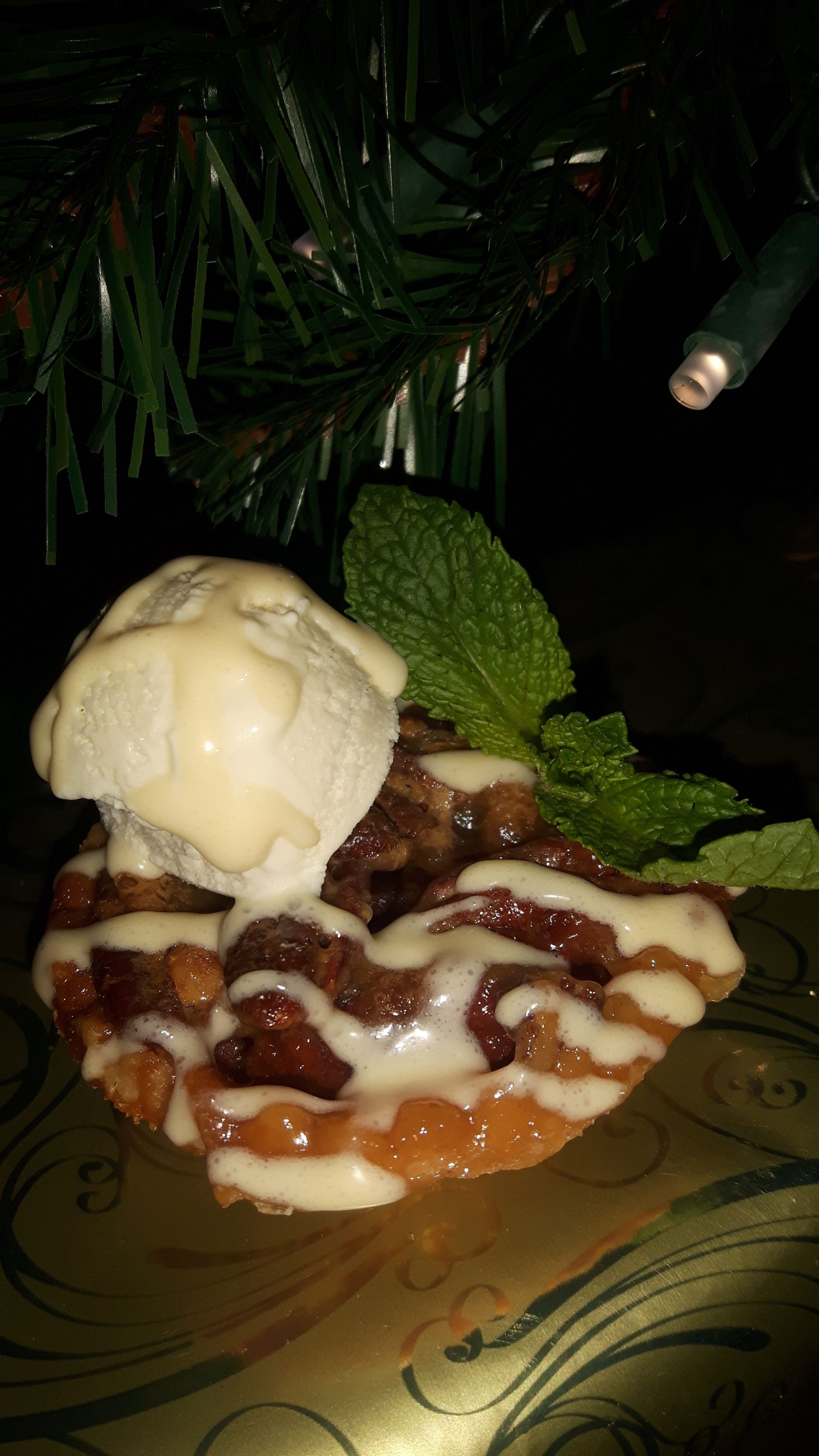 - Warm winter spiced pecan butter tart, vanilla bean gelato, crème anglaise - $9