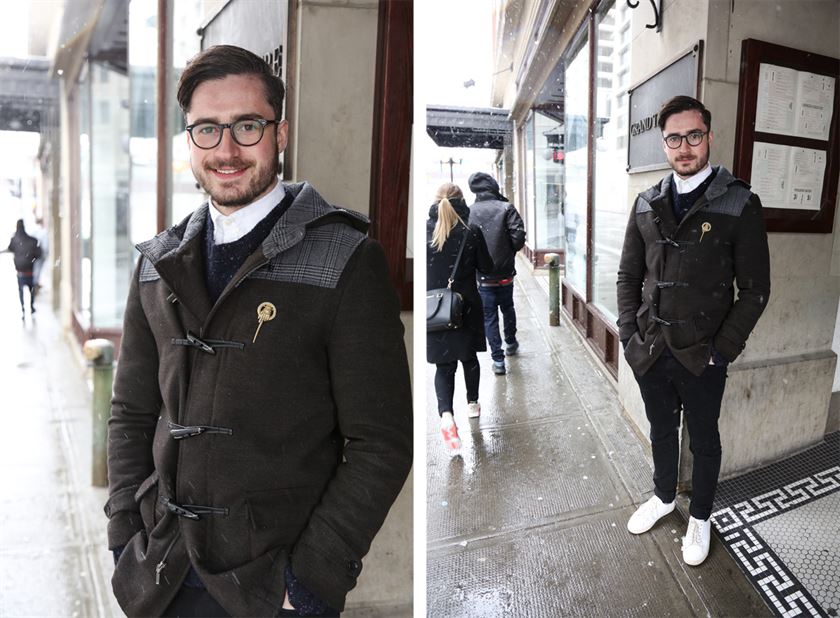 Over the past few weeks I feel like I’ve been stumbling upon some seriously stylish ladies - and it was definitely time to find a stylish gent to add to the list of Street Style Huntress adventures in YYC. Oliver Pennock was the perfect capture - even though it decided to turn cold and snowy on the morning we photographed - but nonetheless I was able to capture his “hipster” style that I have to say I adore. I love the simplicity of his looks, which always have a nice amount of detail and pattern. There’s something to be said about classic pieces and colours, where so much room is left to add fun pieces of style to the mix.